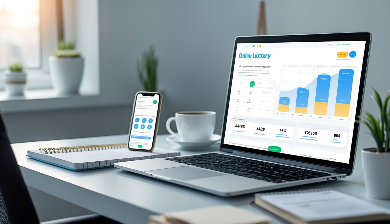 Meja kerja modern dengan laptop, ponsel, dan alat tulis yang rapi, menunjukkan proses pendaftaran togel online tanpa kesulitan.